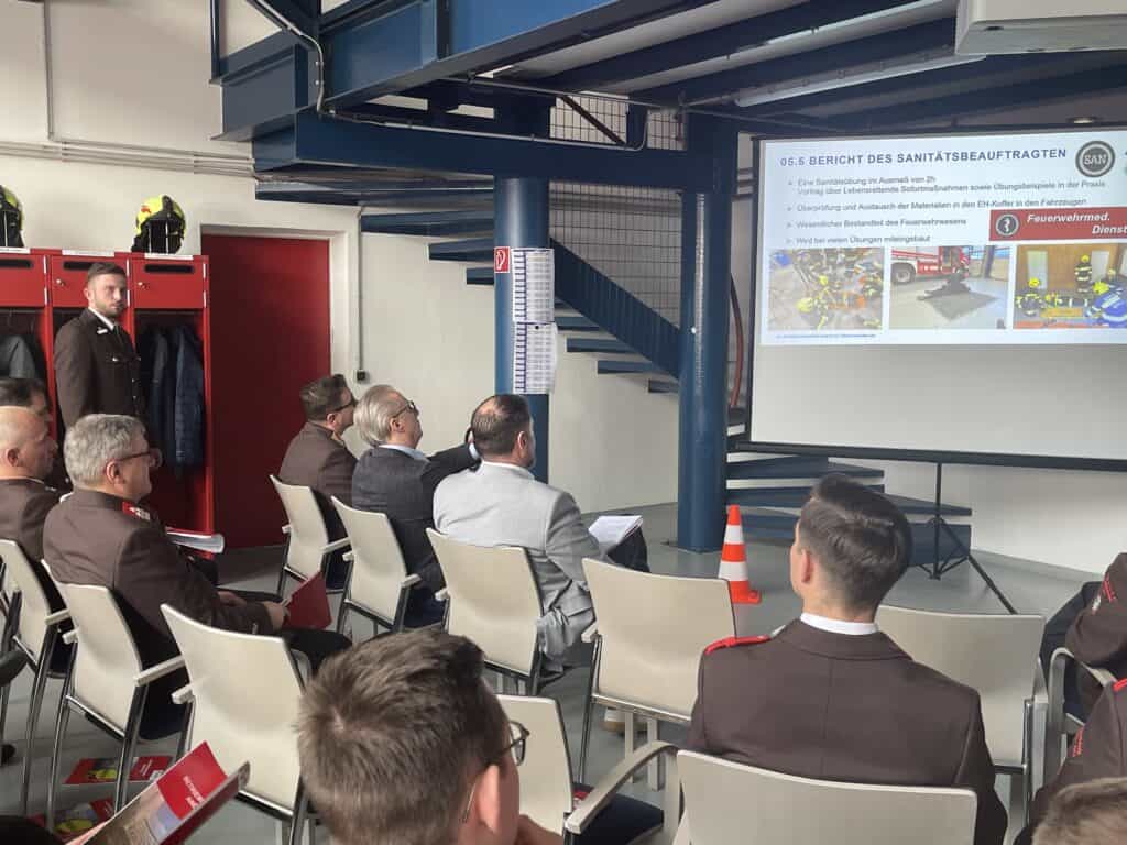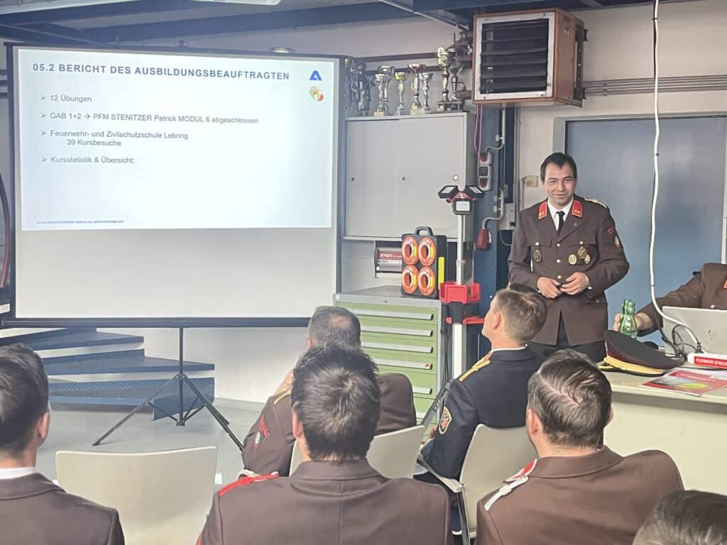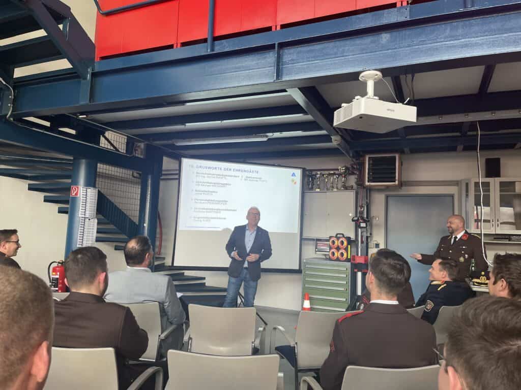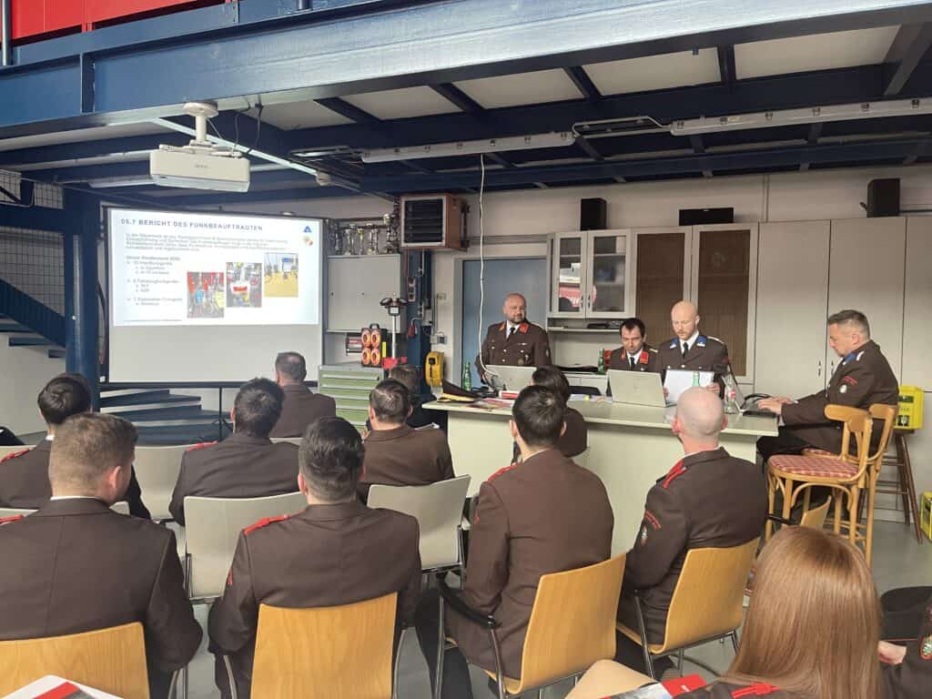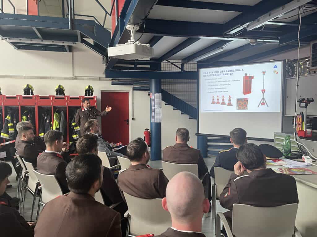 Im Anschluss berichteten die jeweiligen Fachbeauftragten über ihre Tätigkeitsbereiche und gaben einen umfassenden Überblick über Übungen, Einsätze sowie organisatorische Maßnahmen des vergangenen Jahres. Ein besonderer Höhepunkt der Versammlung war die Präsentation von Einsatz- und Tätigkeitsbildern sowie eines Einsatzvideos zur TIAC – Yankeerettung, welche die Leistungsfähigkeit der Betriebsfeuerwehr eindrucksvoll veranschaulichten.