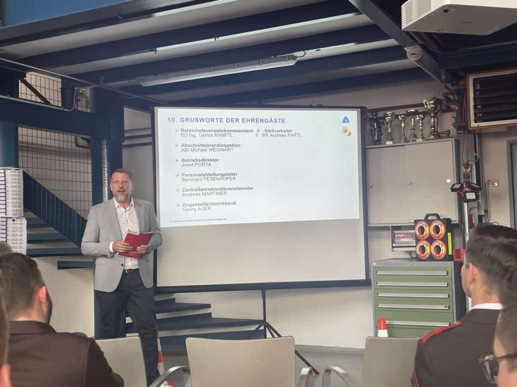 Unter den anwesenden Ehrengästen befanden sich Bereichsfeuerwehrkommandant BD Gernot Ranftl, Bereichsfeuerwehrkommandant-Stellvertreter BR Andreas Partl, Abschnittsbrandinspektor ABI Michael Wegwart, Betriebsdirektor Josef Porta sowie der Zentralbetriebsratsvorsitzende Andreas Martiner. In ihren Grußworten unterstrichen sie die hohe Bedeutung der Betriebsfeuerwehr und würdigten deren unverzichtbaren Beitrag zur Sicherheit des Unternehmens.